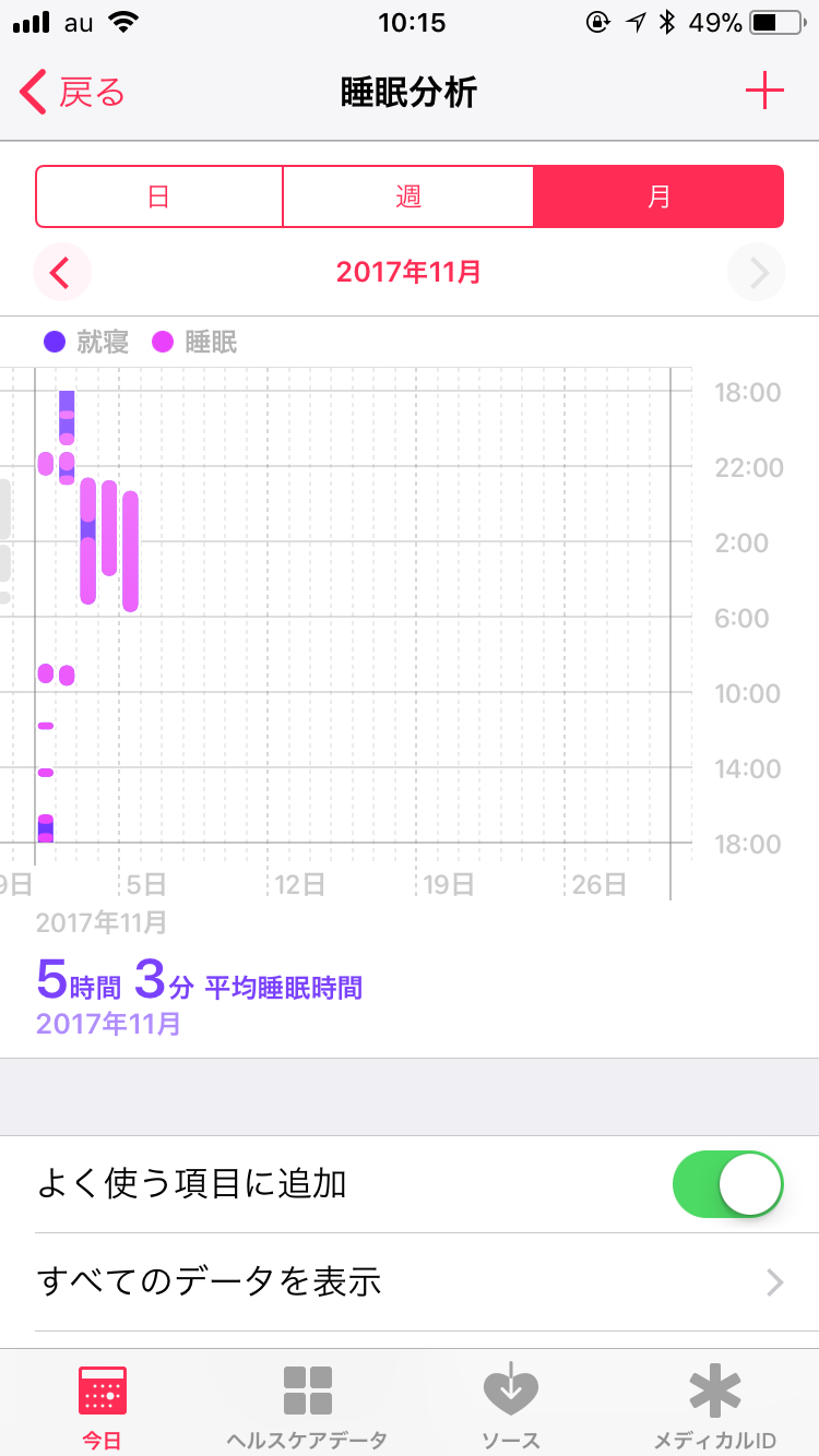 睡眠分析で就寝と睡眠は違うがはじめて分かりました