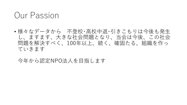 「この際だから、みんなに言っておく、僕は学歴至上主義ではないけど、草創期から、高校進学・卒業できなくて、不登校・引きこもりに陥り、自信を失った若者をみてきた。たかが、高校進学でだよ。だからこそ、名前を高卒支援会。高校卒業を支援する会とした。今回の補欠募集も年度末にどれだけの子が高校を辞めるんだ!? 東京都だけでも数千人規模だろ。今まで不登校じゃない子で、高校に転編入学するば、成功する事例は今まで、数多くある。大倉がまたですか!って言うなら、オレなんか、どうなっちゃうんだ。34年も同じ事を続けているんだ。年度末で高校中退?ってなる子を救おう。オッケイ!?」