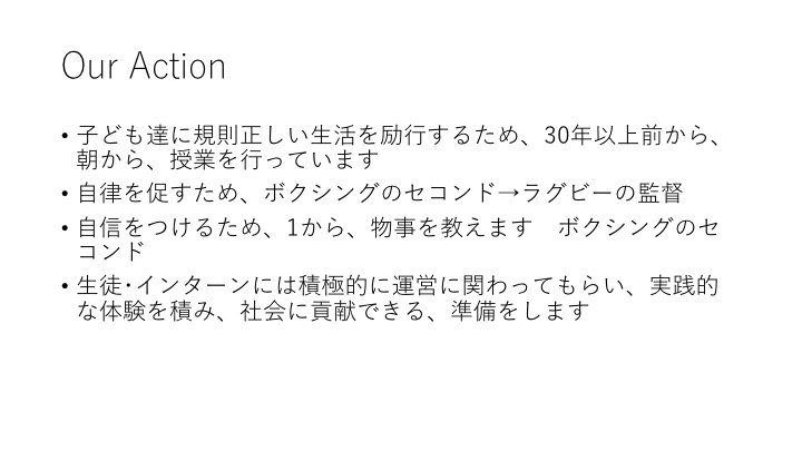 子ども達が規則正しい生活をし自信を持ち自律し社会に貢献する未来を実現する