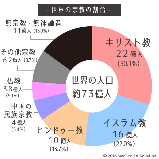 これだけ、グローバル化と叫ばれているが、やっているのは英語教育位だとおもうよ。特にイスラム教は日本人にとっては遠く離れた中東の宗教と思われているが、インドネシアの人が最大なんだよ。また、統計によると、2100年にはイスラム教が世界最大勢力になると予想されているんだ。第一、世界的にみると、日本人の無宗教というのは少数派なんだ。今はキリスト教、イスラム教、ヒンズー教、仏教、ユダヤ教」と。