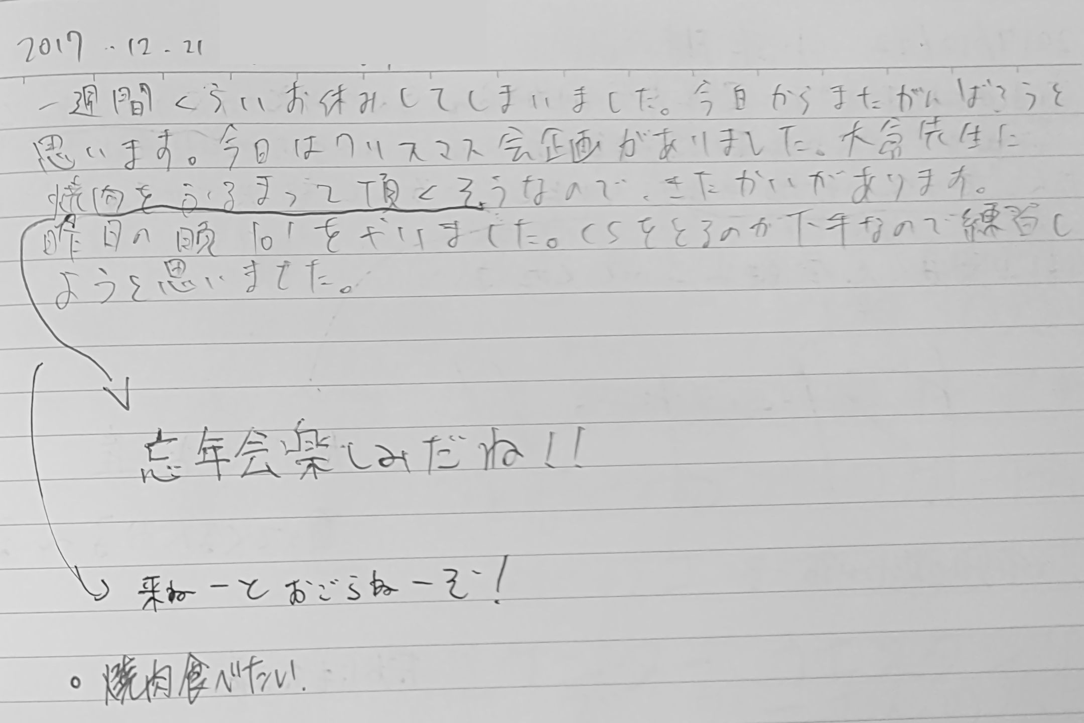 今日はクリスマス会企画がありました。大倉先生に焼き肉を振る舞って頂けるそうなので、来たかいがあります。