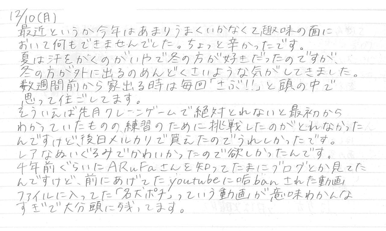 そういえば先月クレーンゲームで絶対取れないと最初からわかっていたものの練習のために挑戦したのがとれなかったんですけど、後日メルカリで買えたのでうれしかったです。レアなぬいぐるみで可愛かったので欲しかったんです。