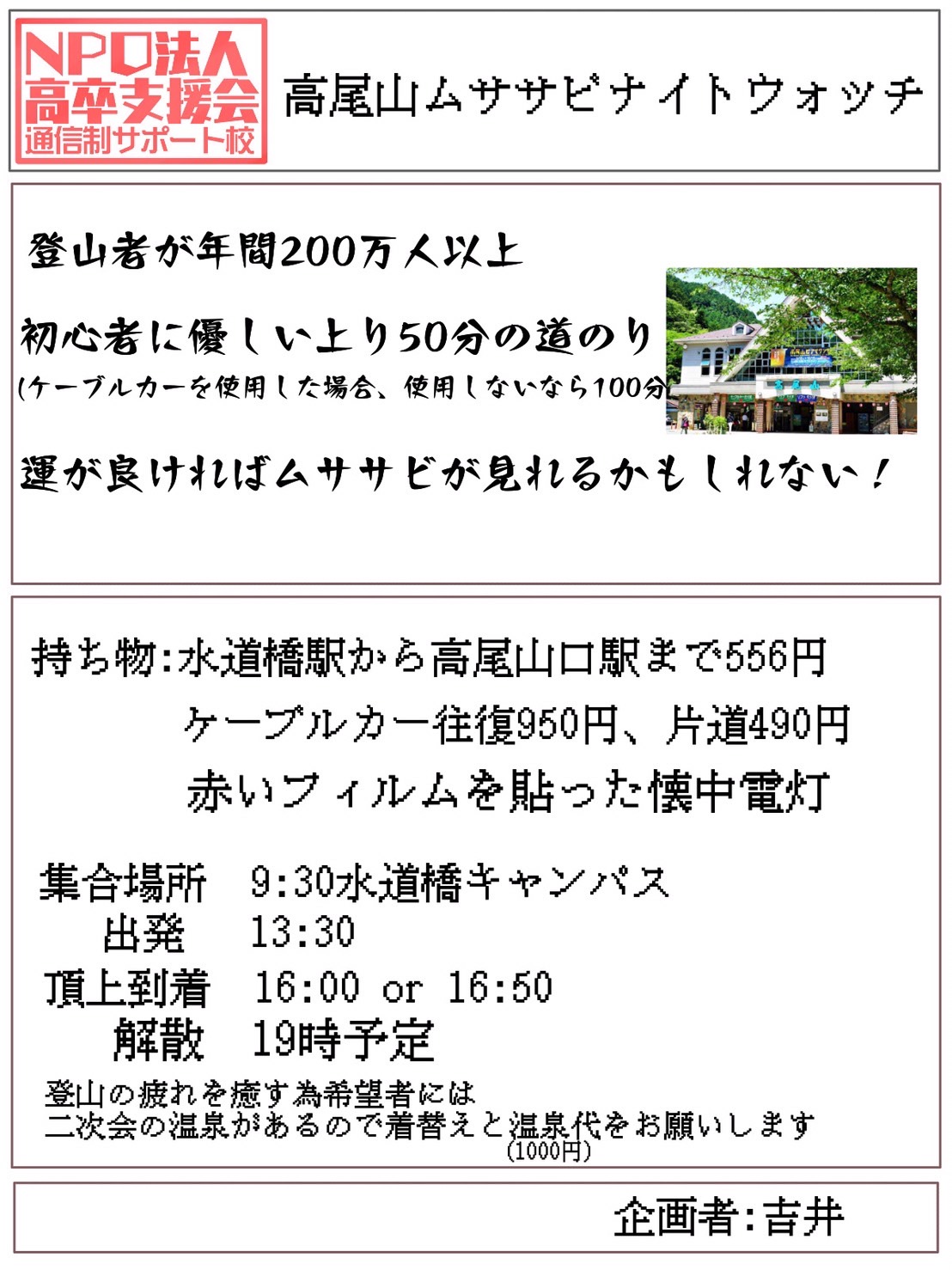 今週末は、高尾山企画があります。夕方から登りますので保護者の方もぜひご参加ください。山登りをしながらだと普段話せないことも話しやすくなるのか、色々と話してくれます。