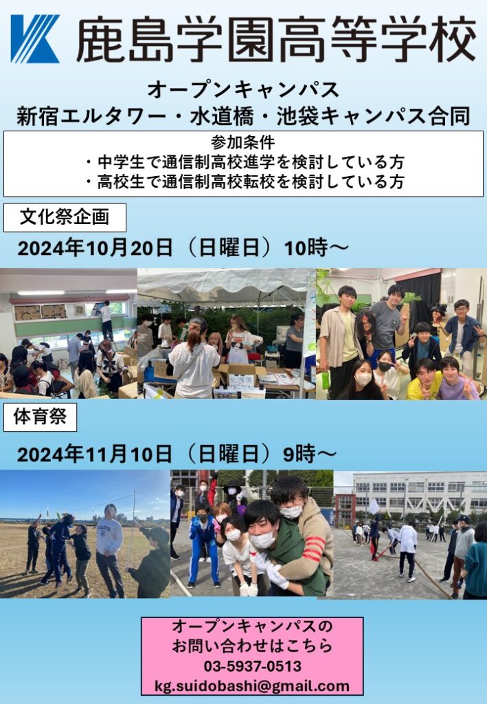 鹿島学園高等学校 オープンキャンパス 新宿エルタワー 水道橋 池袋